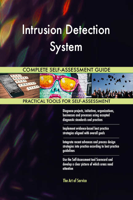 * The Self-Assessment Excel Dashboard; with the Intrusion Detection System Self-Assessment and Scorecard you will develop a clear picture of which Intrusion Detection System areas need attention, which requirements you should focus on and who will be responsible for them: