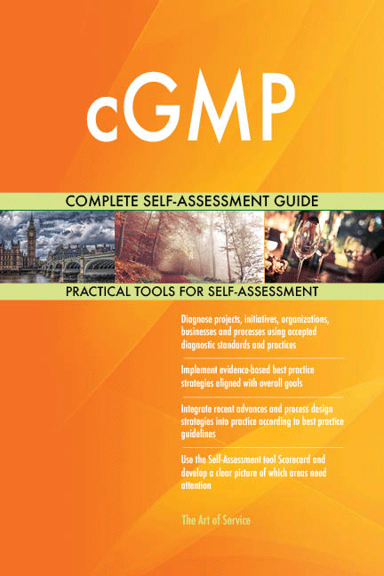 Featuring 953 new and updated case-based questions, organized into seven core areas of process design, this Self-Assessment will help you identify areas in which cGMP improvements can be made.